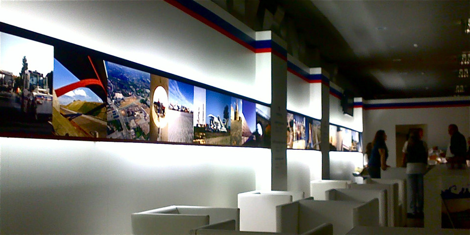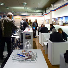 Je niedriger die Hallendecke desto wichtiger die Lichtplanung. Wir setzen Eurovia auf dem Kongress für Straße und Verkehr dramatisch in Szene. Beleuchtete Dias und coole Lounge-Möbel sind die Zutaten für ein Konzept, das aufgeht. Entwurf, Planung, Realisation.